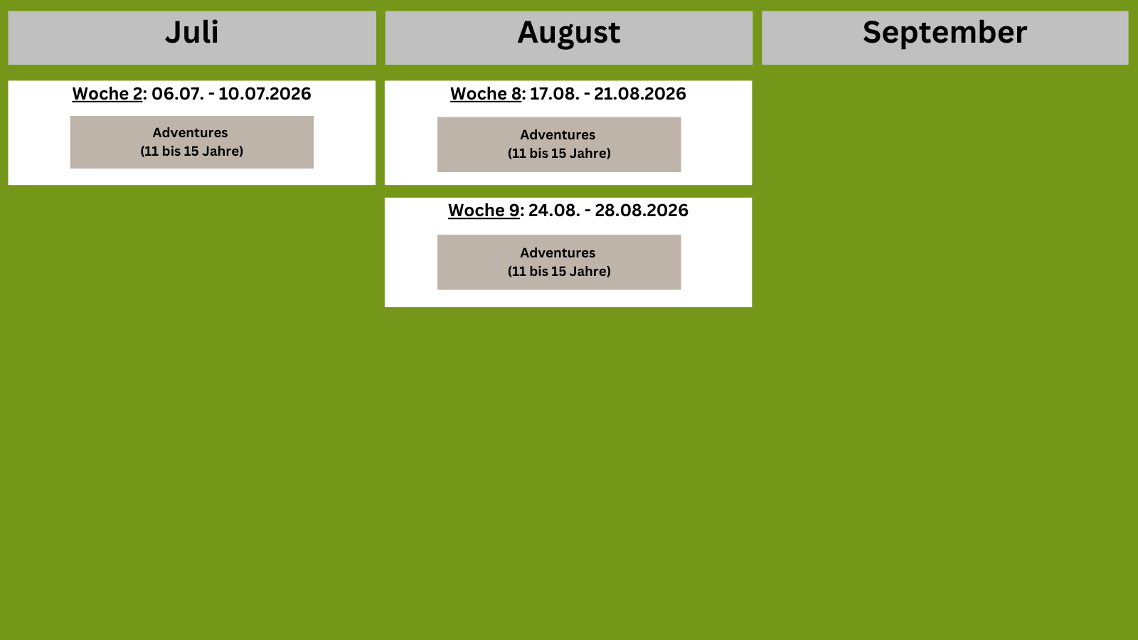 Che si tratti di arrampicate sulle rocce, di giochi e divertimento nei boschi e nei fiumi o di un’atmosfera da rifugio, durante la Settimana Adventure ce n’è per tutti i gusti! Preparatevi a vivere un’esperienza piena di avventure!